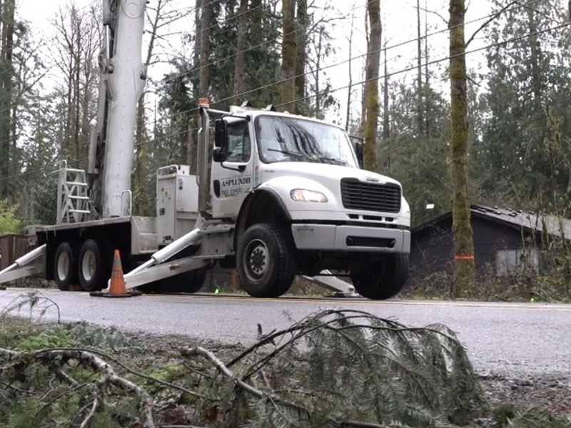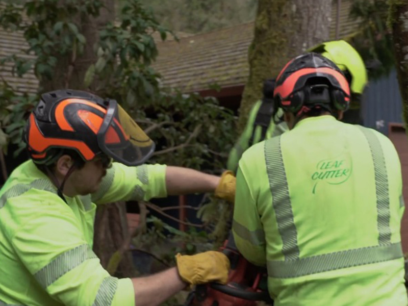 April 2025: PGE contract crews demonstrate how to safety trim trees near utility lines.